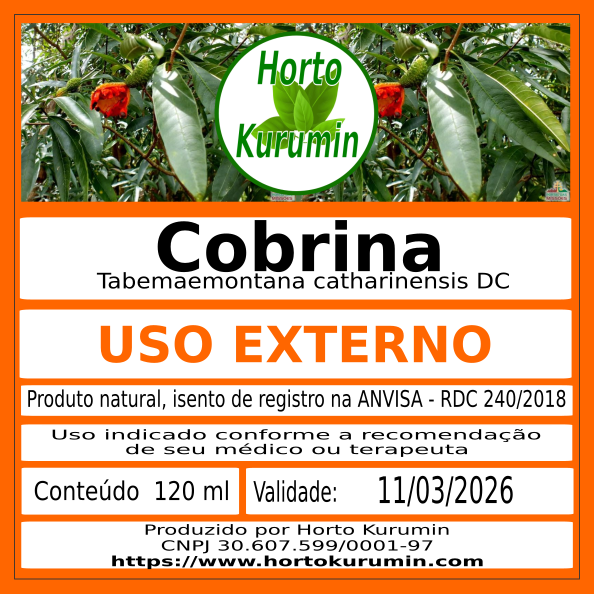 Indicações de uso da Loção de Cobrina Horto Kurumin: Uso externo, para aplicação do chá sobre a região afetada, alivia os efeitos de picadas de insetos, tem efeito anti-histamínico para alergias.